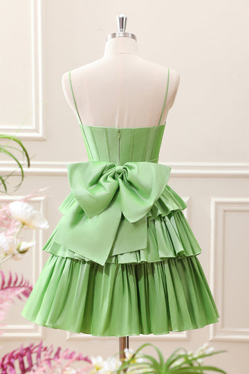 Green A Line Corset Tiered Ruffles Mini Dress with Bows