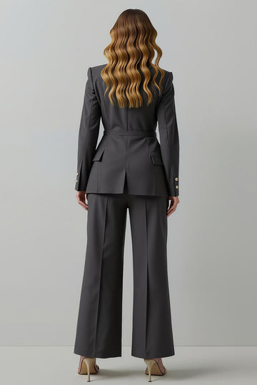 Silver Peak Lapel Long Sleeve 2-Piece Women Pantsuits