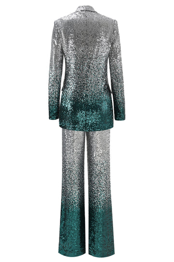 Sparkly 2-Piece Silver and Peacock Peak Lapel Women Prom Suits