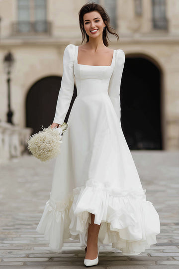 Ivory A-Line Long Sleeve Square Neck Engagement Dress With Ruffles