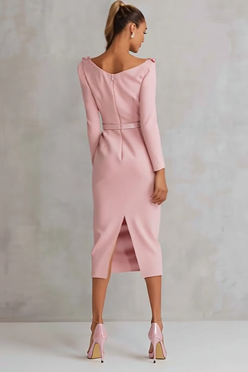 Pink Pencil Ruffle Work Dress With Long Sleeves