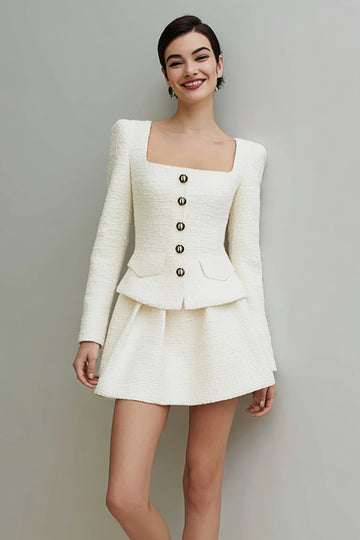 2-Piece Ivory Long Sleeve A-Line Square Neck Work Dress