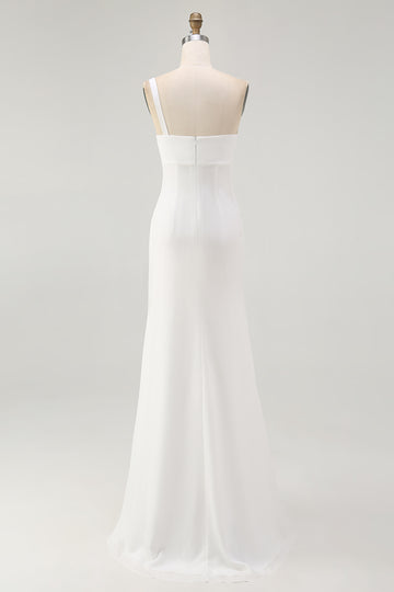 One Shoulder Ruched Ivory Engagement Dress with Slit