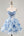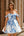 White Blue Flower A-Line Cold Shoulder Printed Beaded Corset Homecoming Dress