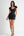 Black Bodycon Ruched V-Neck Mini Dress with Cap Sleeves