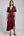 Printed Burgundy Ruffled Asymmetrical Wedding Guest Dress