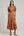 A Line Print Apricot V-Neck Midi Wedding Guest Dress with Belt
