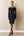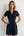 Off The Shoulder Navy Ruffled Work Dress with 3/4 Sleeves