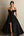 Satin A Line V-Neck Asymmetrical Black Tie Dress