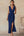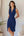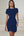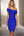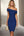 Blue Sheath V-Neck Cap Sleeve Work Dress with Slit