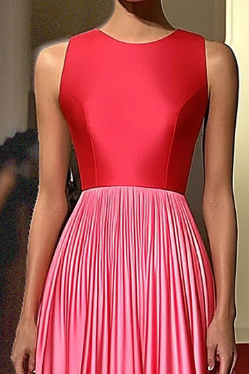 Red&Pink A Line Sleeveless Satin Long Gala Dress