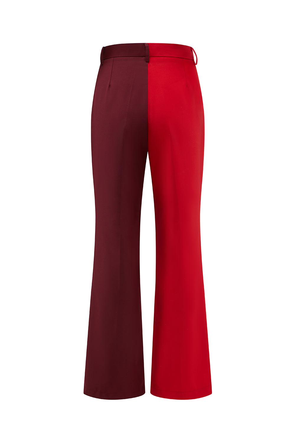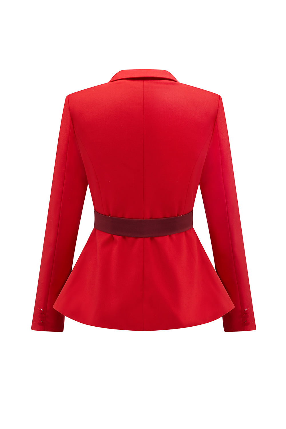 Red Colorblock 2 Piece Slim Fit Notched Lapel Women Suits With Belt