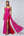 Fuchsia and Magenta Satin A-Line Long Sleeve Formal Dress With Belt