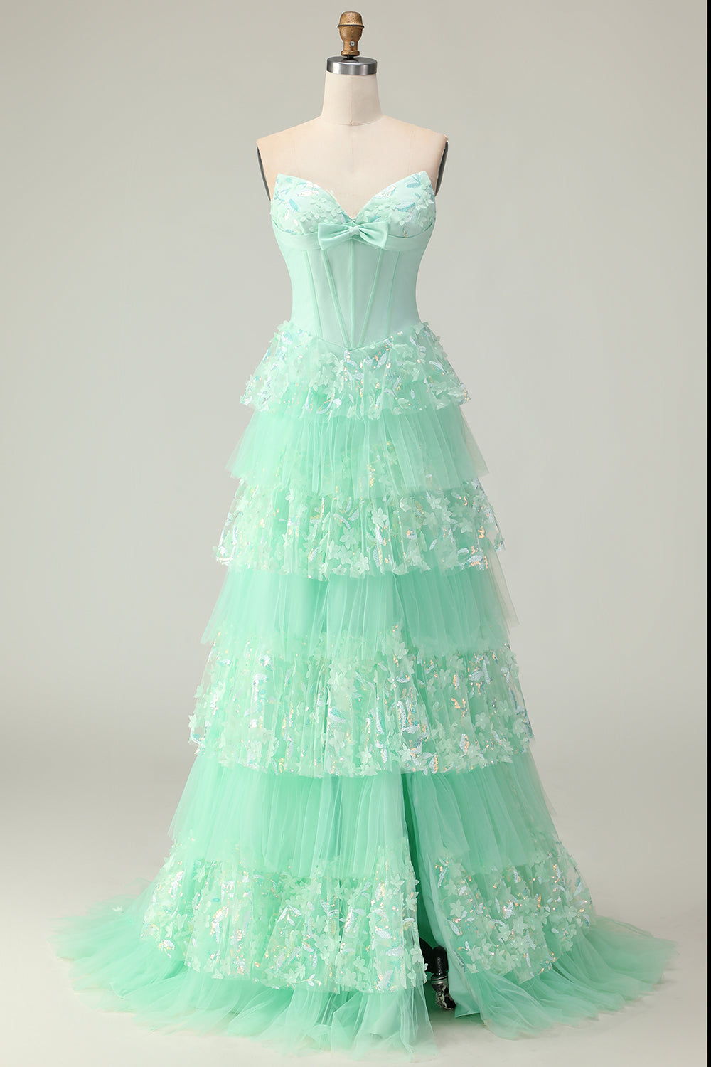 Strapless Purple Corset Tiered A-Line Prom Dress With Slit