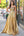 Golden A Line Deep V-Neck Backless Ruched Prom Dress