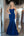 Blue Beaded Long Prom Dress With Slit