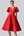 Red V Neck A Line Midi Formal Dress with Puff Sleeves
