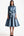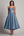 Blue A Line Flared Front Button Closures Midi Formal Dress with Long Sleeves