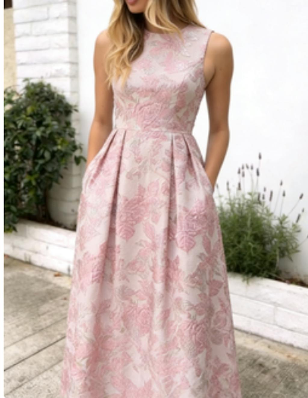 Floral Pink Brocade A Line Wedding Guest Dress with Pockets