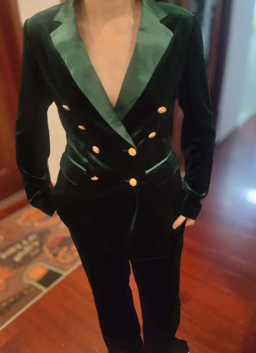 The velvet has a nice weight to it and doesn’t look cheap or shiny. I paired it with heels for a business dinner and felt very put together.