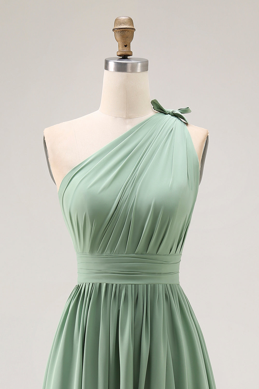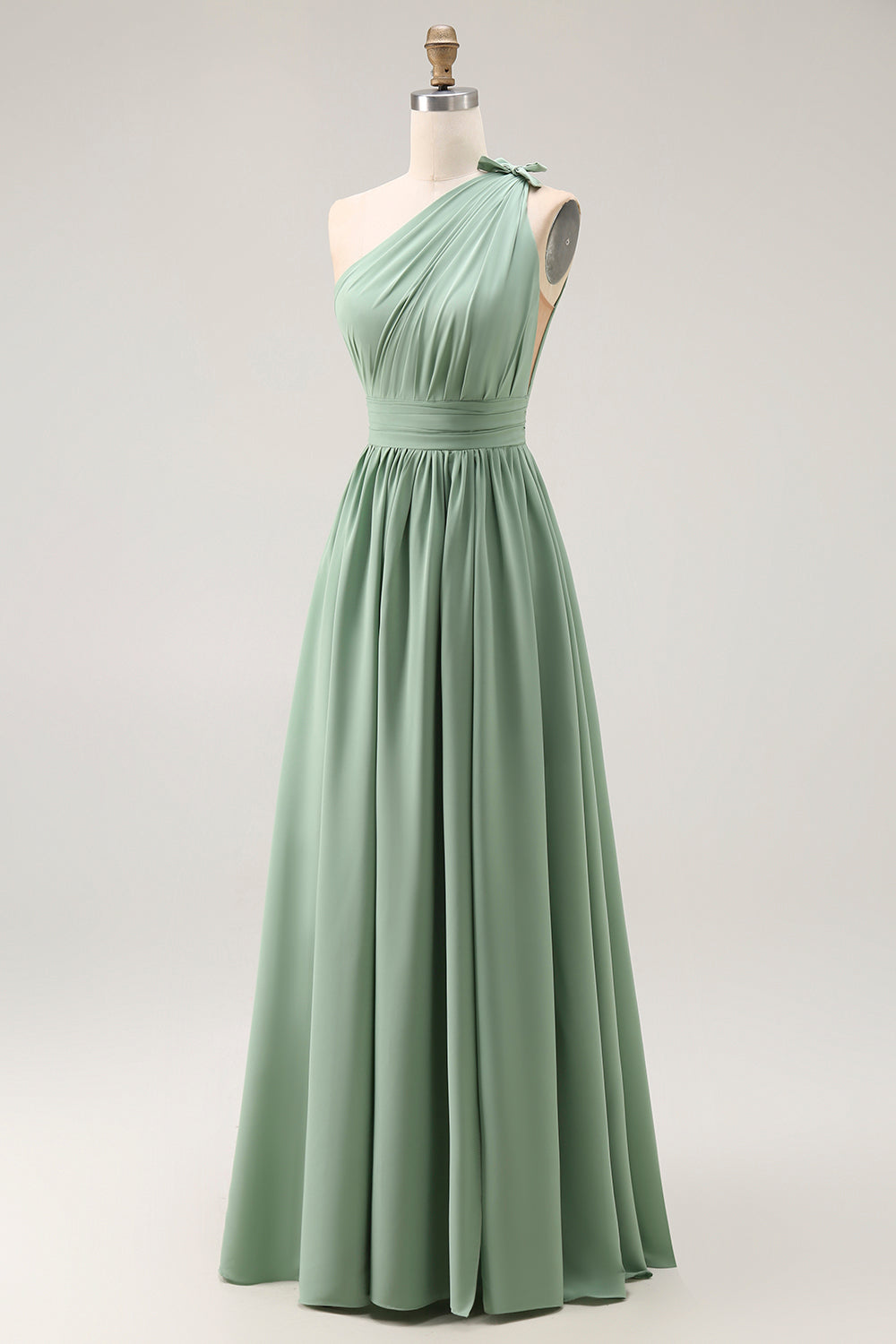 Green One Shoulder Chiffon Bridesmaid Dress with Slit