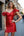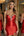 Red Beaded Bodycon Satin Homecoming Dress with Slit