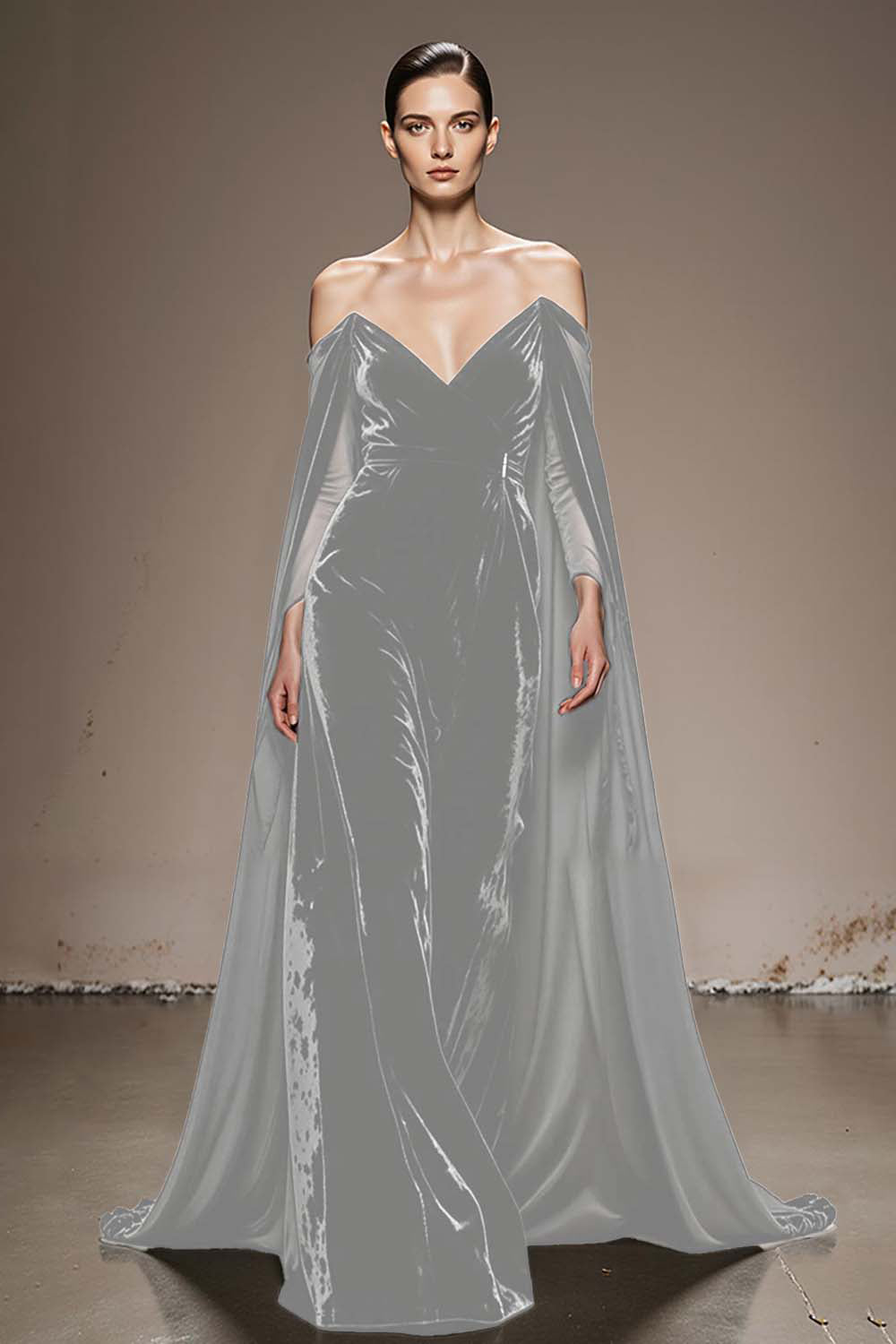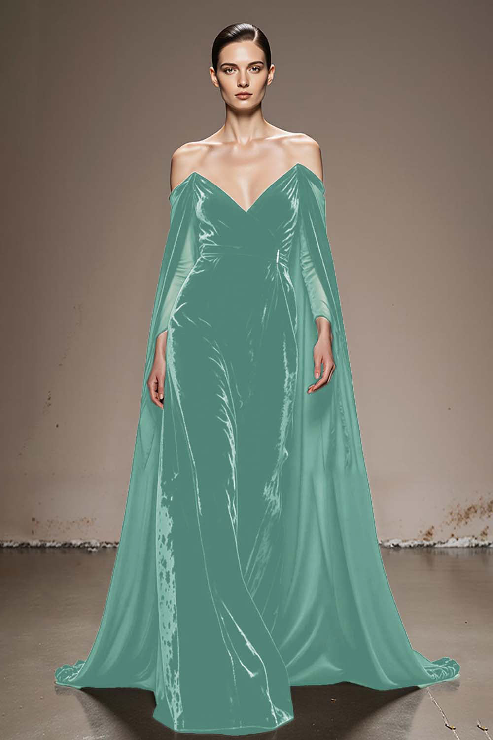 Black Off The Shoulder Velvet Evening Dress with Cloak