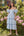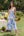 Blue White Floral A Line V Neck Midi Wedding Guest Dress
