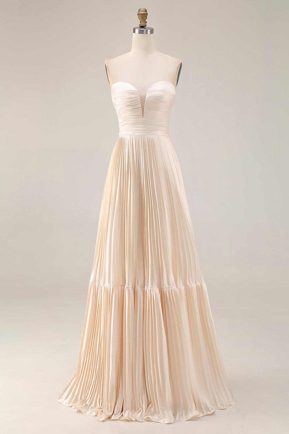 Strapless Champagne Pleated A-Line Wedding Guest Dress