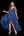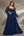 Sparkly Royal Blue V Neck Lantern Sleeves Sash Maxi Dress with Slit
