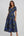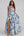 Blue White Floral A Line V Neck Midi Wedding Guest Dress