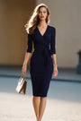 Ivory Sheath V-Neck Midi Dress With Half Sleeves
