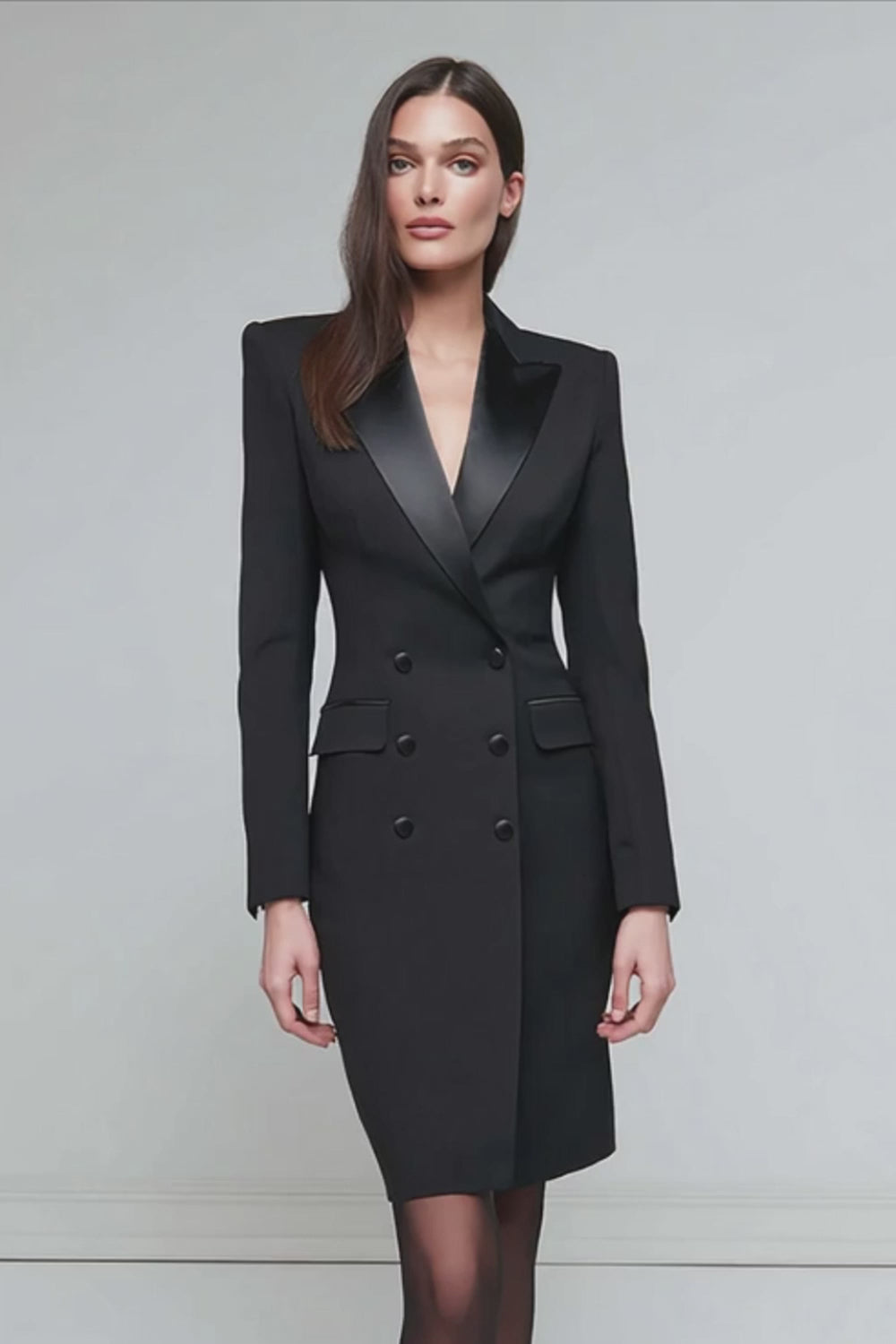 Black Double Breasted Long Sleeve Pencil Work Dress
