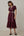 Burgundy Midi Sheath Wedding Guest Dress with Puff Sleeves