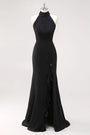 Black Halter Mermaid Formal Dress with Ruffle Hem