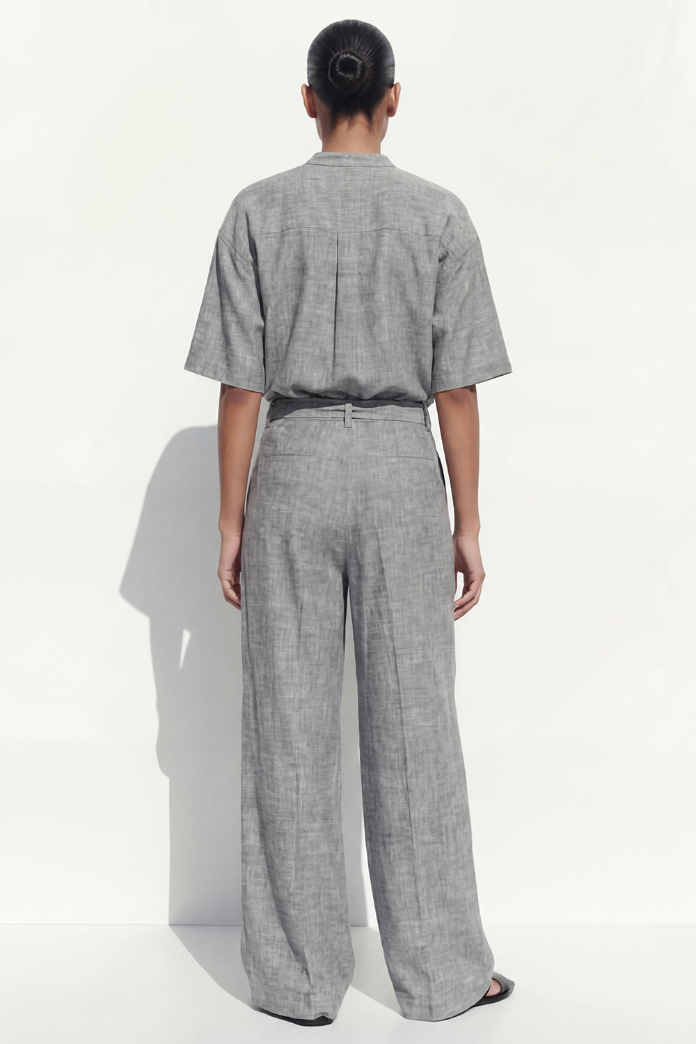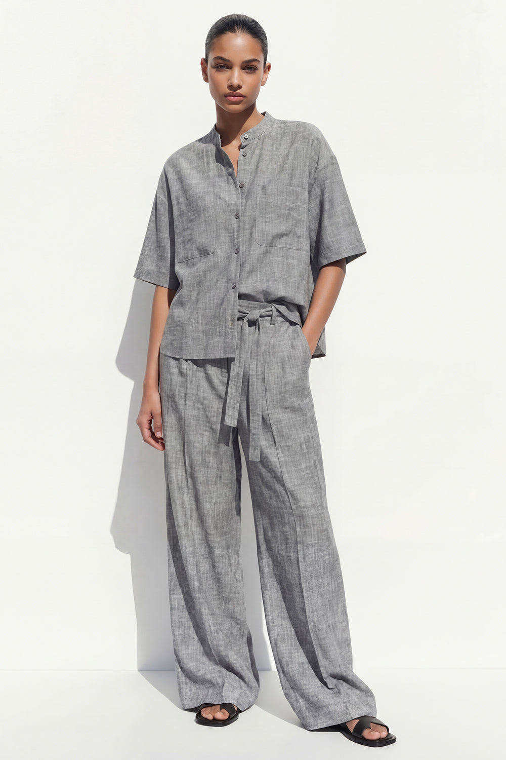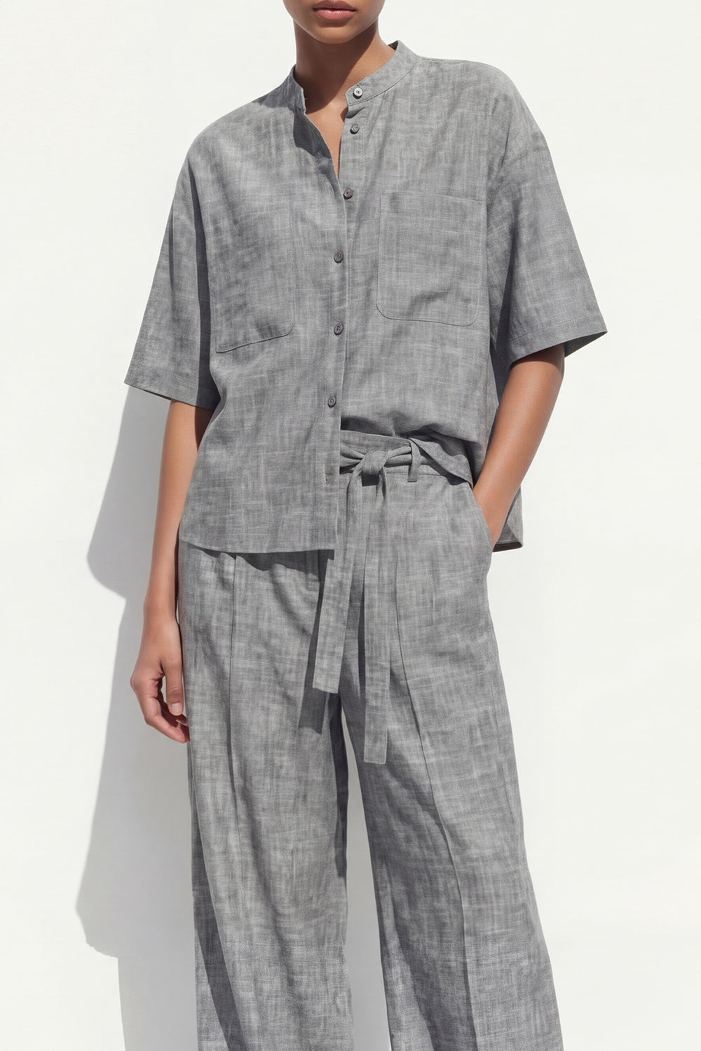 Grey 2 Piece Women's Linen Suits with Half Sleeves