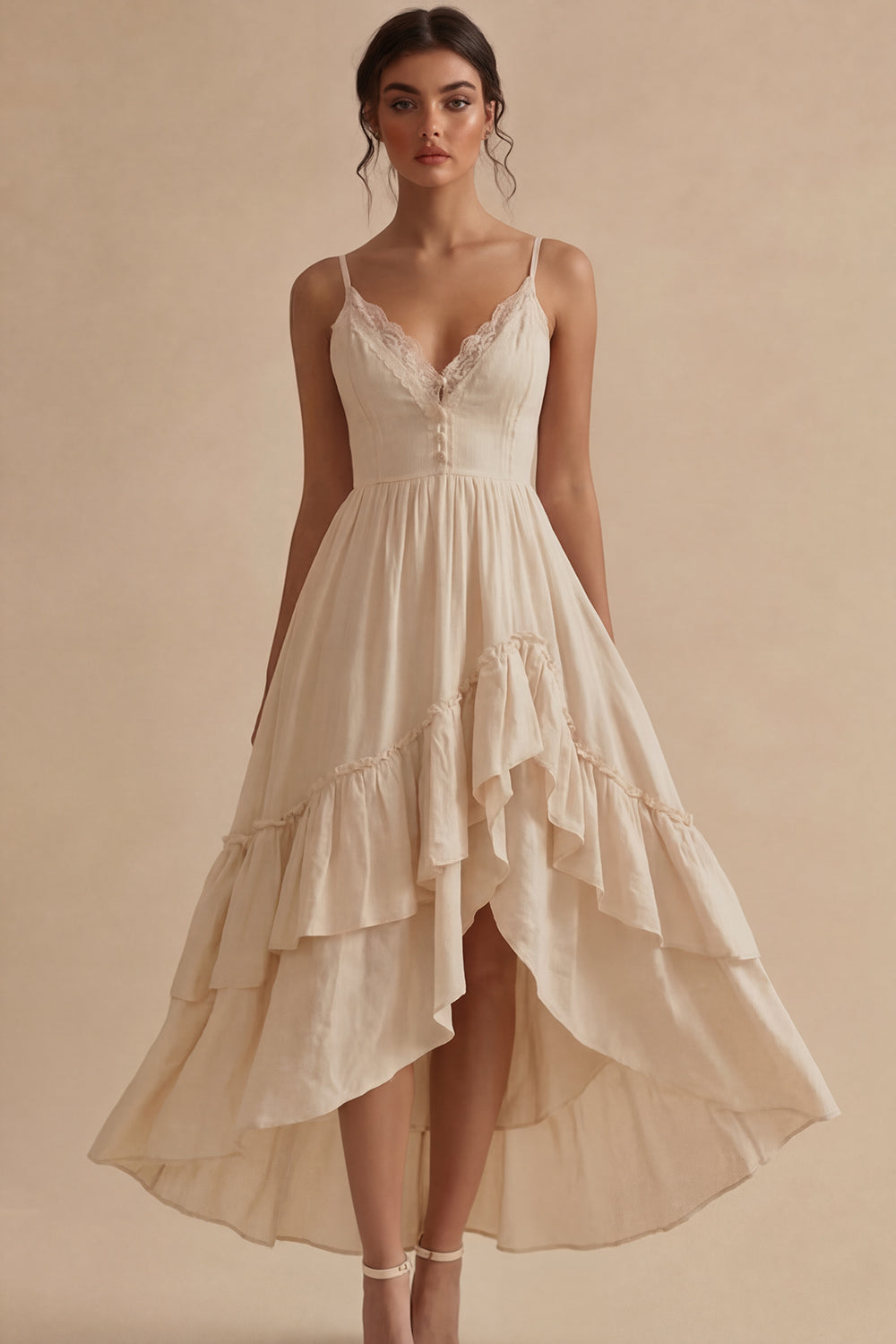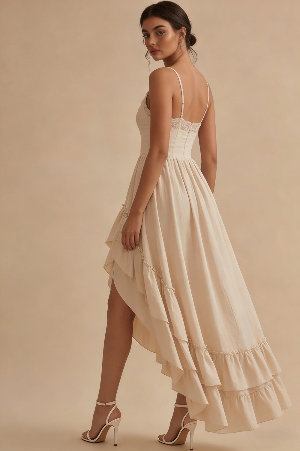 High Low Ruffled A Line Maxi White Dress