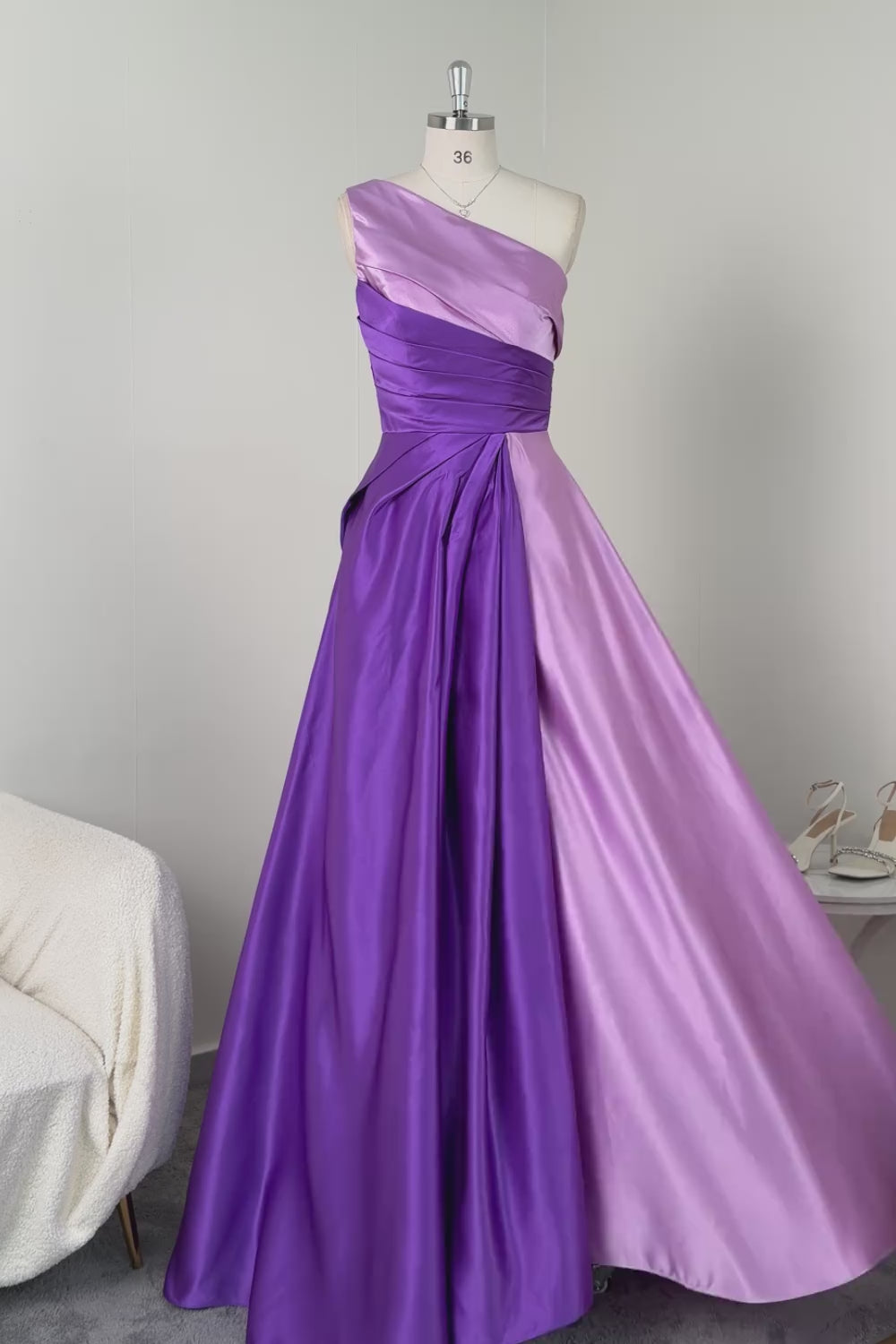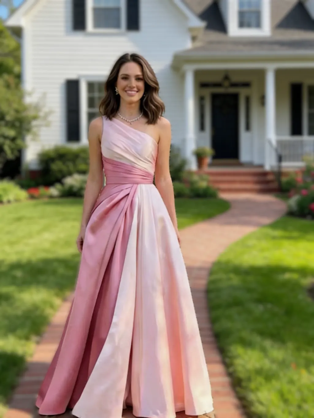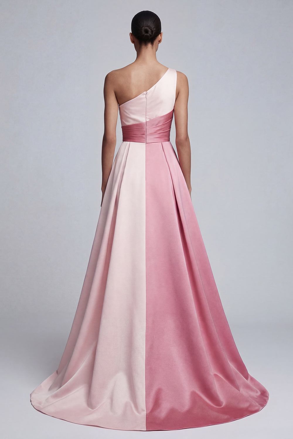 Pink Colorblock A-Line One Shoulder Formal Dress