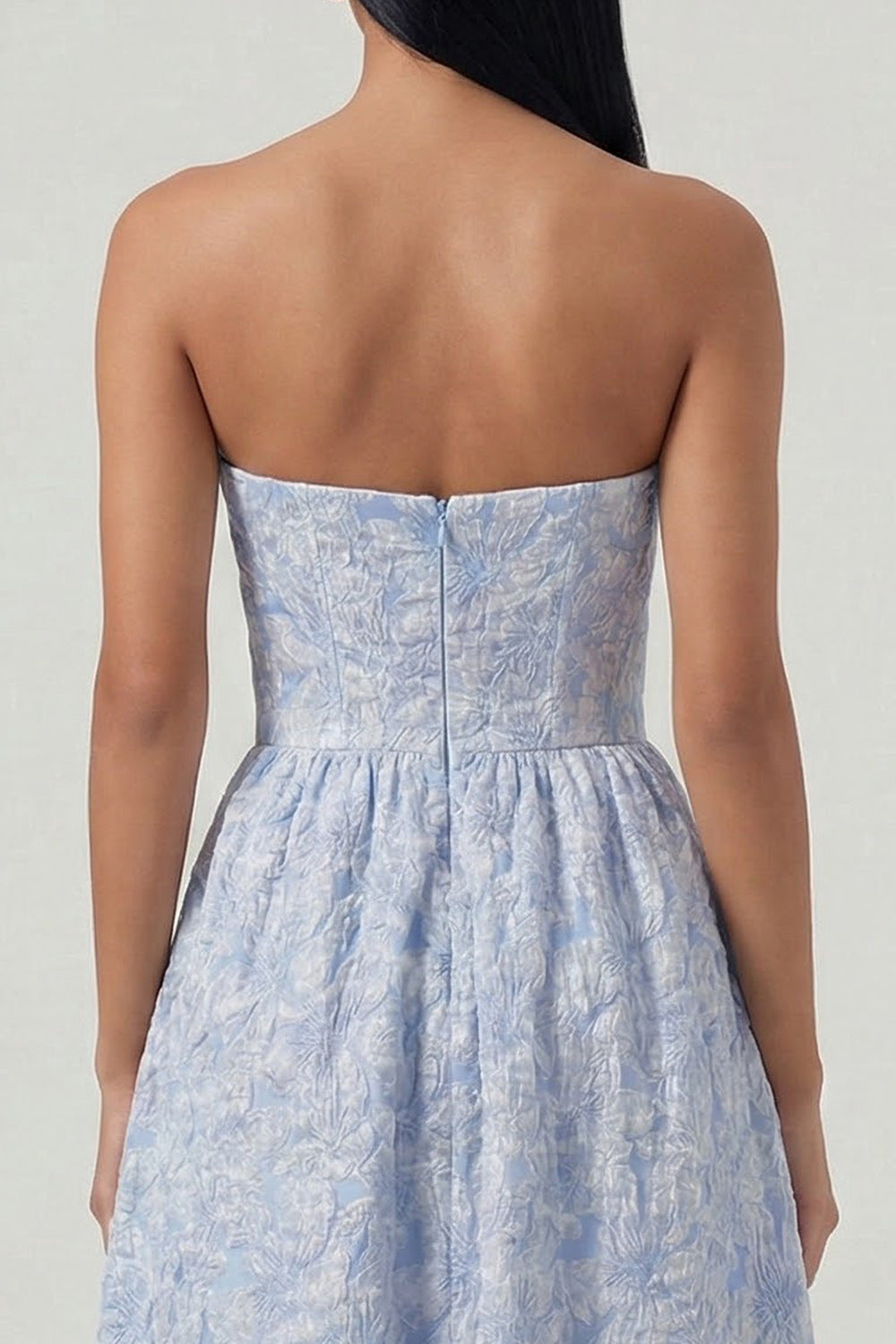 Strapless Floral Blue A Line Maxi Wedding Guest Dress